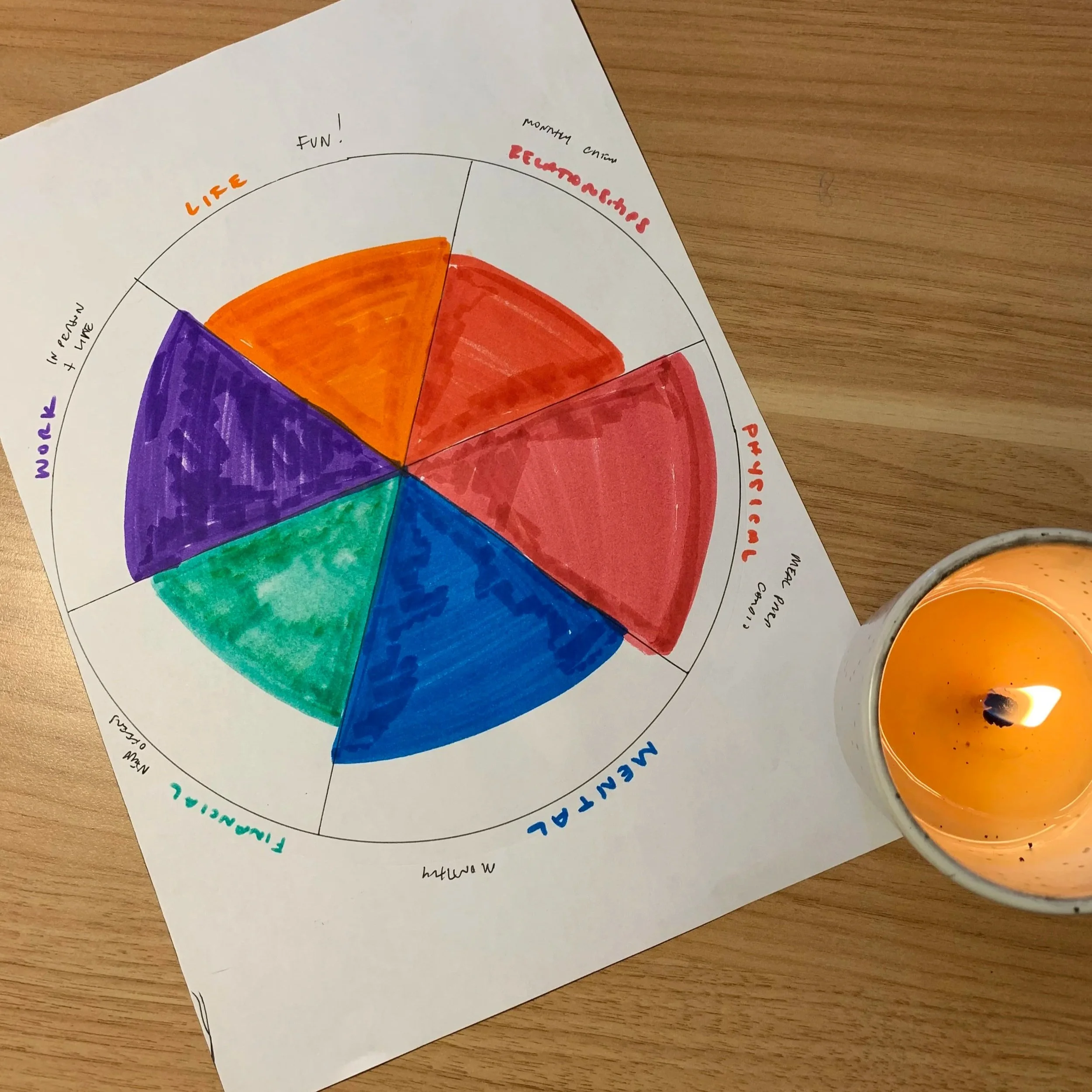 In other words, if you’re completely fulfilled in an area, color the whole piece of the pie in! If it’s an area that’s really lacking right now, make sure that void is visible.
